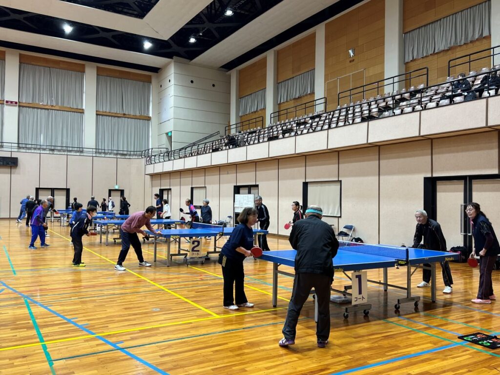 11月9日(日)第46回長井市民卓球大会を開催しました。今年はインフルエンザの影響もあり、例年よりも少ない人数での開催となってしまいましたが硬式の部・ラージボールの部それぞれ、多世代による熱い戦いが繰り広げられました。
